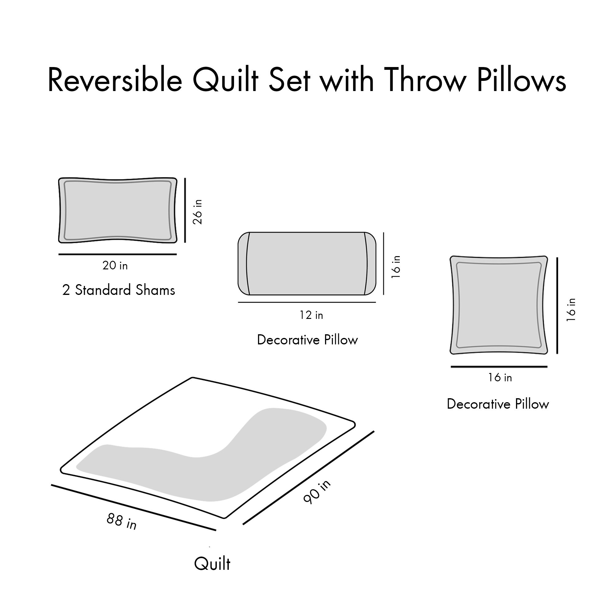 Set includes quilt, 2 shams (1 in Twin/Twin XL), 1 square and 1 oblong decorative pillows